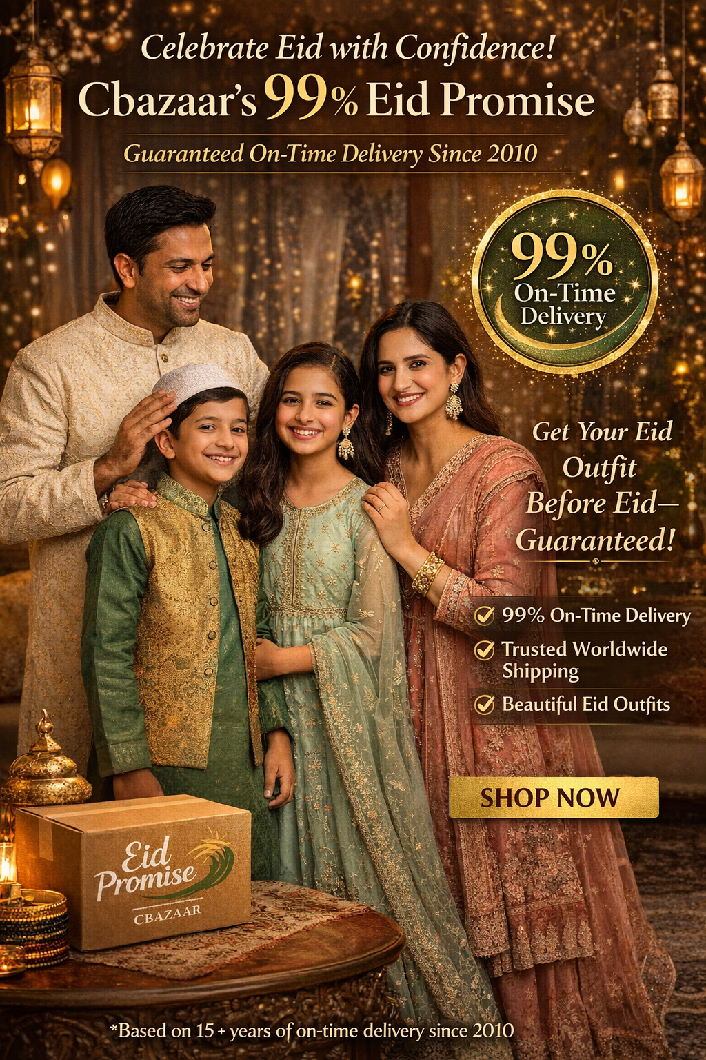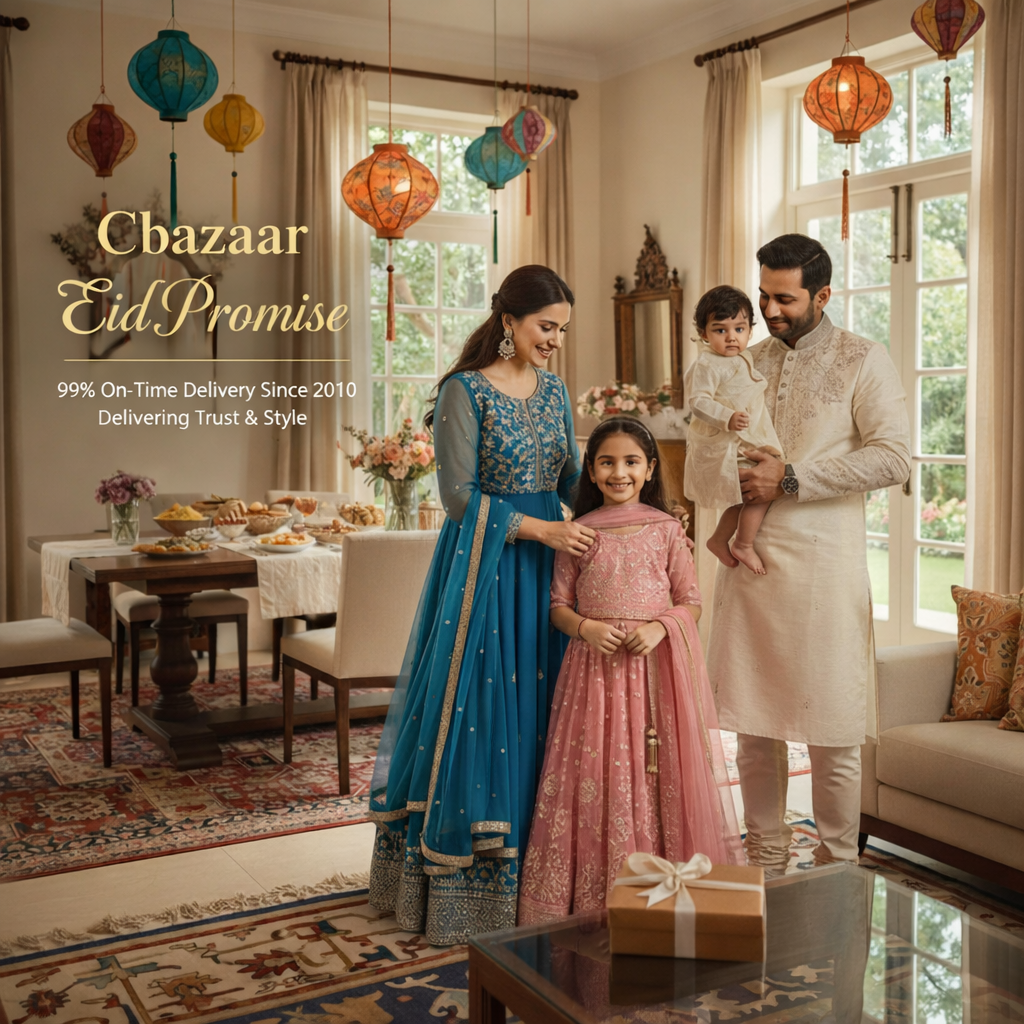 With a 99% on-time delivery record since 2010, the Eid Promise continues to stand as a symbol of reliability and style. This year, as always, Cbazaar remains committed to delivering your festive fashion on time — so you can focus on what truly matters.