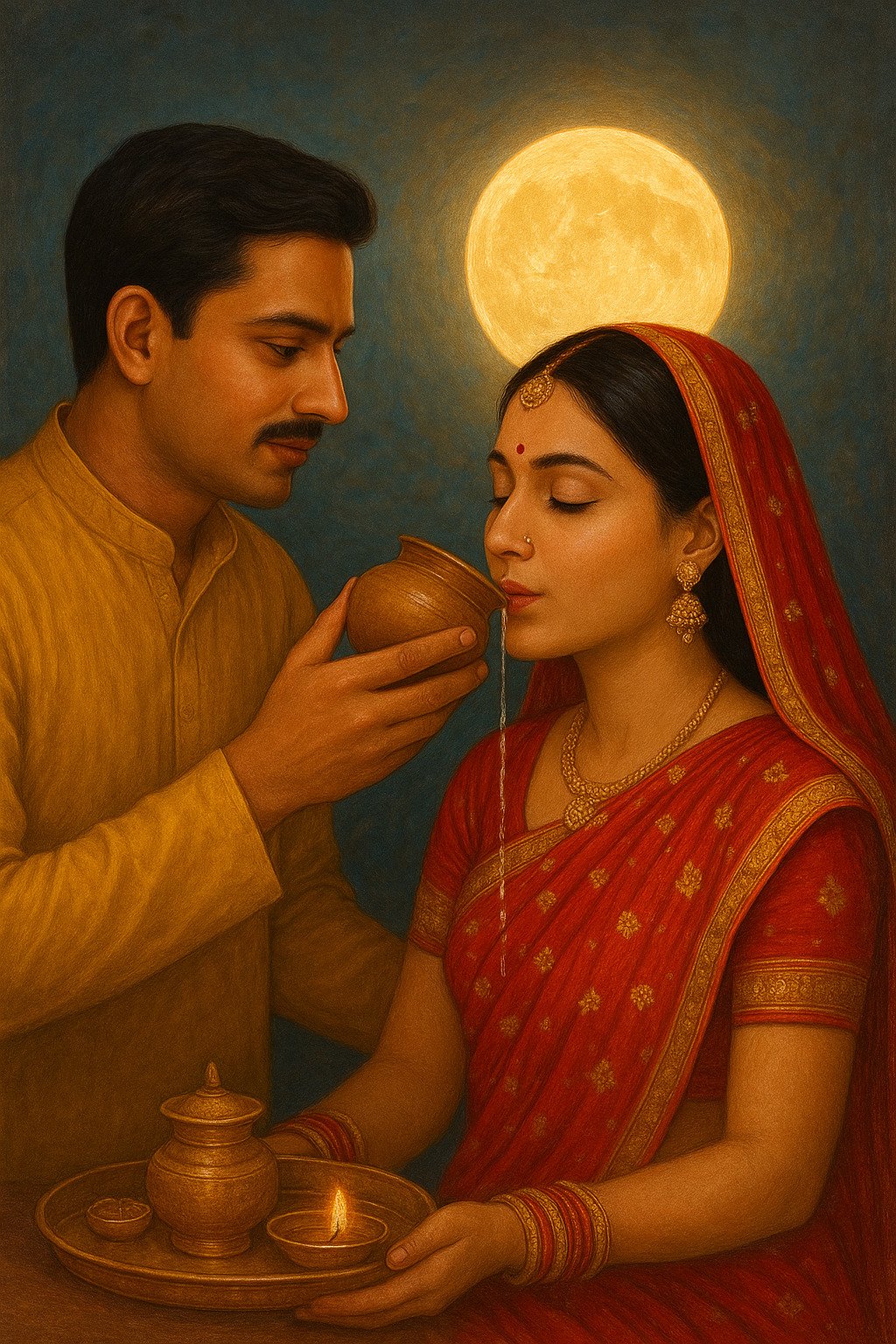 - Karwa Chauth Vrat: Women observe a strict fast from sunrise until moonrise, dedicating their prayers to the well-being and long life of their husbands.