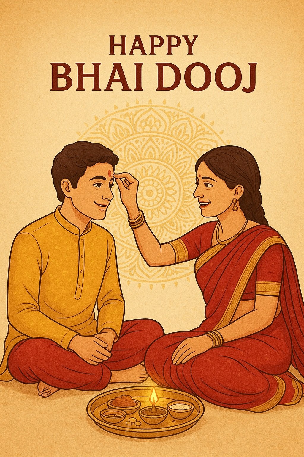 Bhai Dooj, also known as Bhau Beej, Bhai Tika, or Bhai Phonta, falls on the second day (dooj) of the bright fortnight of the Hindu lunar month Kartika, just after Diwali. According to Hindu mythology, the festival is associated with Lord Krishna and his sister Subhadra. After Krishna defeated the demon Narakasura, Subhadra welcomed him home with sweets and flowers, applied a ceremonial tilak on his forehead, and prayed for his well-being. This symbolic act of love and care is what sisters across India replicate during Bhai Dooj.