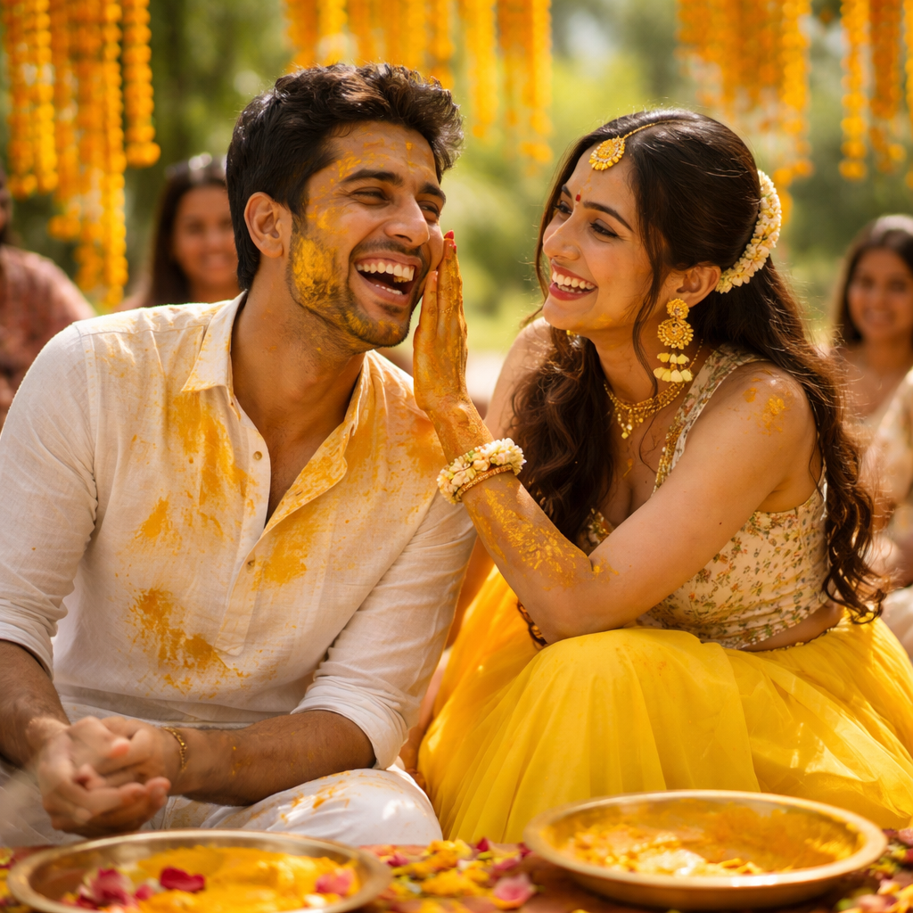 Dressed in simple yet elegant yellow outfits—be it kurtas, sarees, or lehengas—the bride and groom radiate warmth and positivity. The atmosphere is intimate and lively, filled with laughter, teasing, and emotional moments as elders share blessings and children join in the fun. Beyond tradition, the Haldi ceremony creates cherished memories, strengthening family bonds and marking the beautiful beginning of a lifelong journey together.