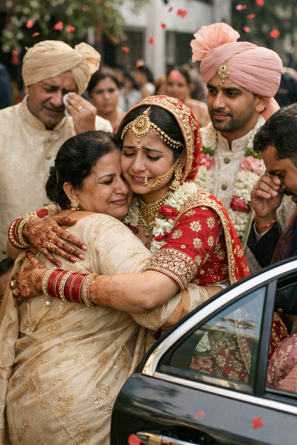 is the most heart-touching ritual of the wedding. As the bride bids farewell to her parents and siblings, emotions overflow. Dressed gracefully in a traditional saree or lehenga, her eyes glisten with tears, yet her heart carries hope. It is a bittersweet moment—leaving behind a world she has always known, while stepping into a future filled with love and promise.