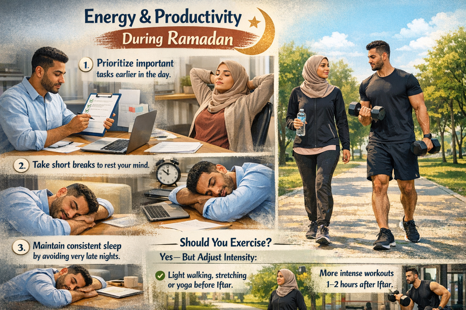 Ramadan is about balance—not exhaustion. Nourish your body thoughtfully, rest intentionally, and honor both your spiritual and physical well-being throughout this blessed month.